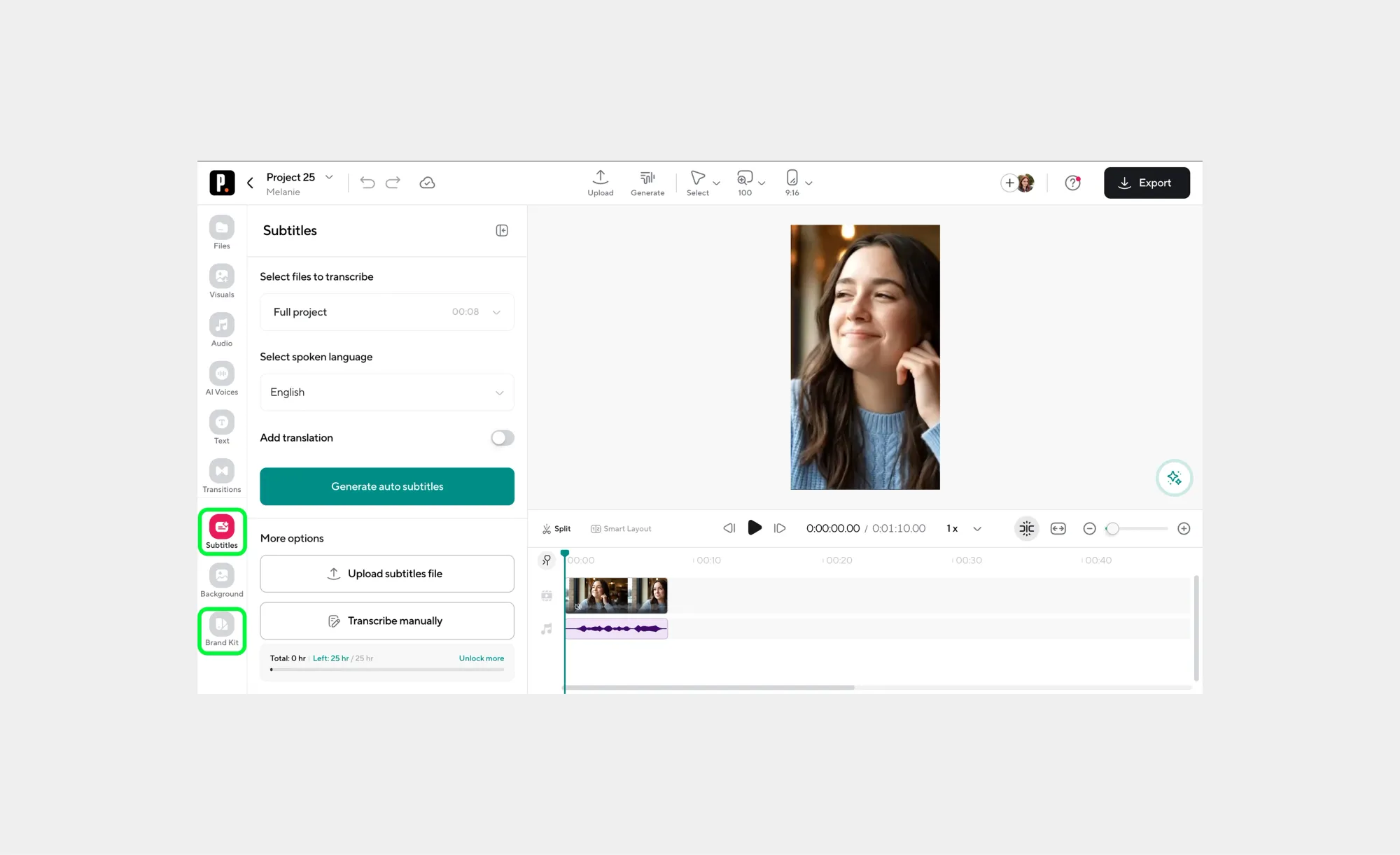 For mobile-first platforms, captions boost engagement and accessibility. You can also apply brand elements to keep your content consistent across channels.
